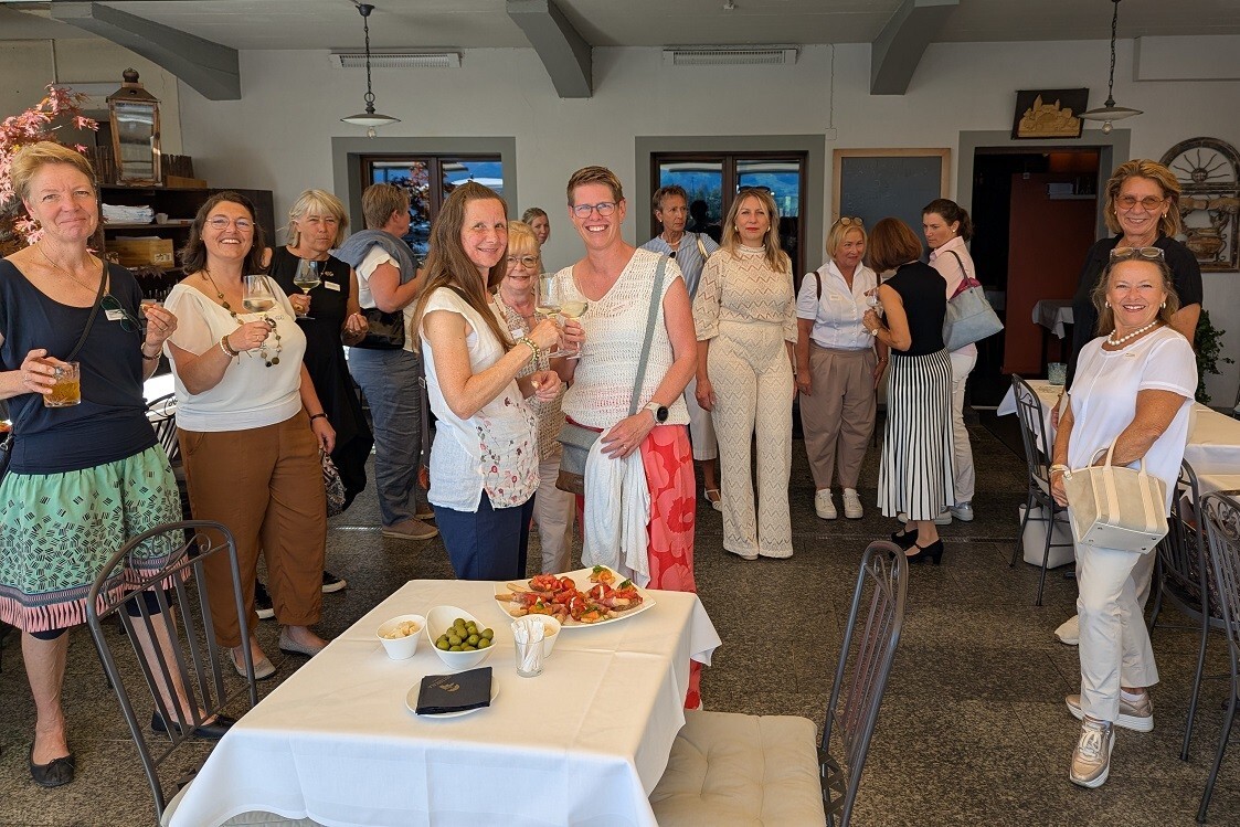 Am Freitag, den 19. September hatten wir zum diesjährigen Regionaltreffen der BPW Clubs Südostschweiz in die Rosenstadt Rapperswil eingeladen. Bei strahlendem Sommerwetter trafen die rund 40 Teilnehmerinnen ab 15 Uhr zu einem feinen Apéro im Restaurant La Scala beim Hafen ein. Nach der Begrüssung und einem ersten angeregten Austausch machten wir uns in drei Gruppen auf, die Stadt Rapperswil (besser) kennenzulernen. Zur Auswahl standen Führungen zu den Themen: Frauenschicksale, das Kapuziner-Kloster sowie eine klassische Stadtführung. Es zeigte sich einmal mehr, dass Rapperswil immer wieder aufs Neue einen Besuch wert ist und es stets Spannendens zu entdecken gibt. Bei gut 29 Grad kamen wir allerdings ordentlich ins Schwitzen… Umso mehr genossen wir den anschliessenden Apéro und die thailändischen Spezialitäten in der Himmapan Lodge von Franco und Claudia Knie direkt am Zürichsee, wo wir den Abend gemütlich ausklingen liessen.